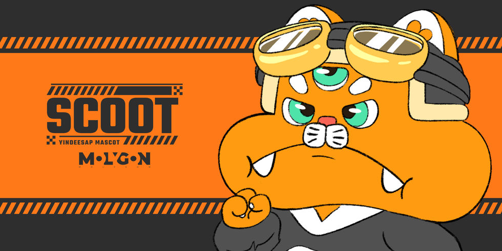 "Scoot" เป็นแมวสีส้มที่มาพร้อมลักษณะพิเศษ คือ มีสามตา และชอบแลบลิ้นอยู่ตลอดเวลา ลิ้นของเขามีลายใบ Clover ซึ่งเป็นสัญลักษณ์นำโชค